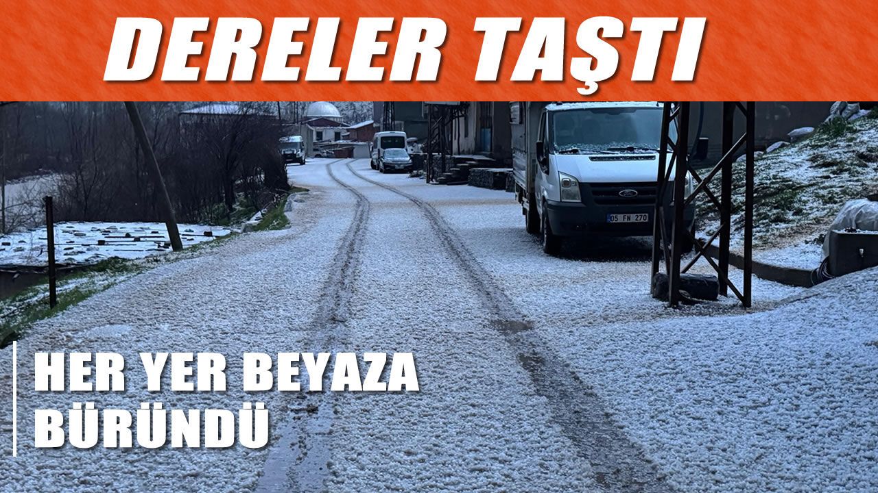 Gök gürültülü sağanak sonrası dereler taşarken, ilçe merkezi ve çevresi kısa sürede beyaz örtüyle kaplandı.