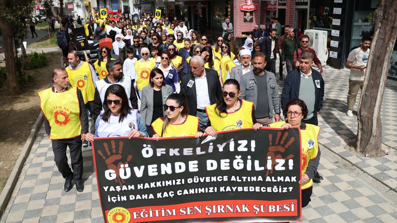 Şırnak’ın Cizre ilçesinde bir araya gelen eğitim emekçileri, okullarda artan şiddet olaylarına karşı sessiz yürüyüş düzenledi. Milli Eğitim Bakanı’nı istifaya çağıran kitle, "Öğretmeni korumayan barikatlar, hak arayan öğretmenin karşısına dikiliyor" diyerek tepki gösterdi.