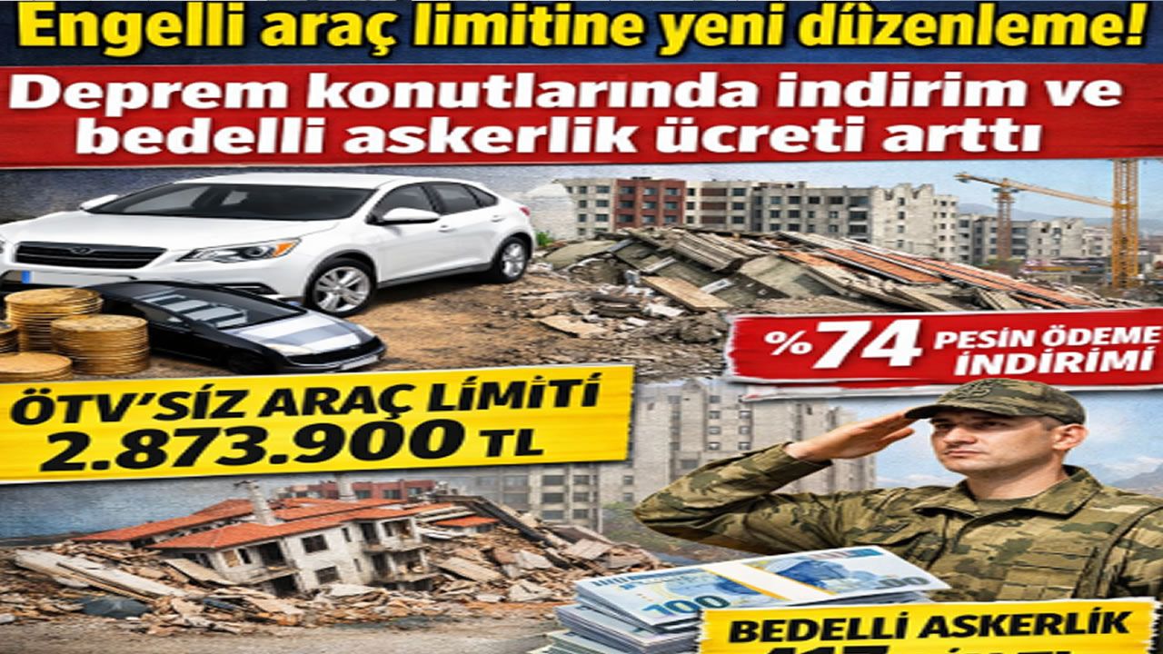 Cumhurbaşkanı Recep Tayyip Erdoğan’ın imzasıyla yürürlüğe giren 7577 sayılı torba kanun, engelli vatandaşlardan depremzedelere, çalışanlardan askerlik yükümlülerine kadar geniş bir kesimi ilgilendiren önemli düzenlemeleri beraberinde getirdi.