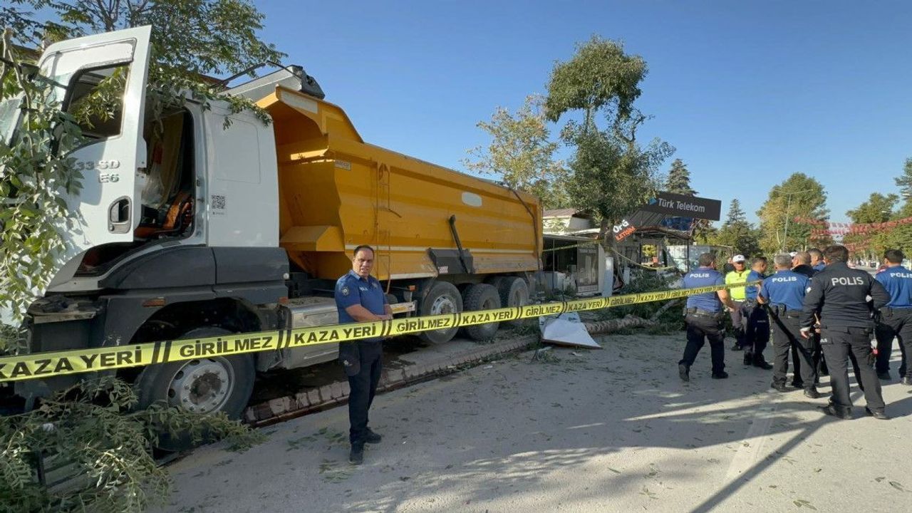 İnönü Caddesi’nde freni boşaldığı öne sürülen kamyon, yol kenarındaki 7 konteyner iş yerine çarptı.