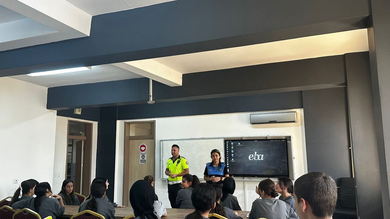Silopi İlçe Emniyet Müdürlüğü ekipleri, Hacı Mehmet Ökten Anadolu Lisesi öğrencileriyle buluşarak polislik mesleği, güvenlik ve trafik kuralları konusunda bilgilendirme yaptı.