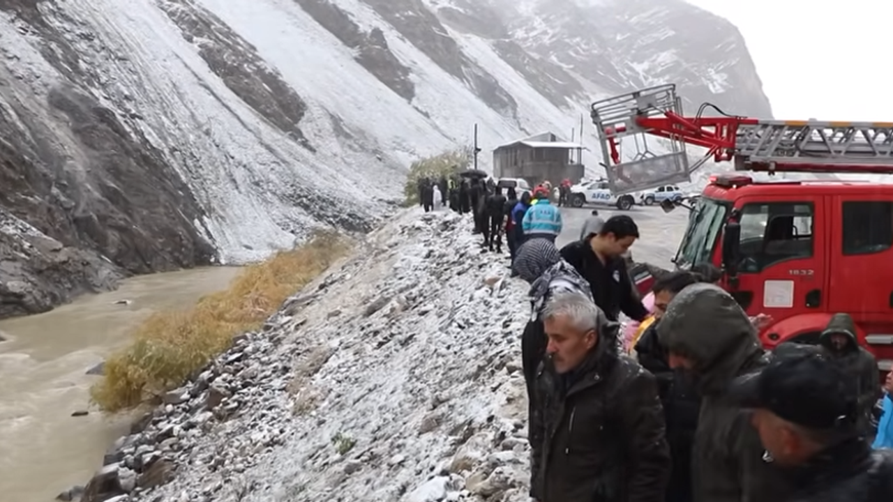 Bölgede etkili olan kar yağışı nedeniyle dağ yamacından kopan kayaların yola düşmesi, sürücünün ani manevra yapmasına yol açtı. Kontrolden çıkan araç, sarp arazi nedeniyle yaklaşık 200 metre aşağıdaki suya devrildi. Araçtaki 4 kişi suyun ortasında mahsur kaldı.