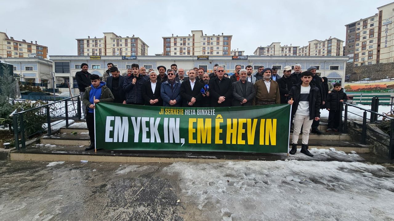 Şırnak Cumhuriyet Meydanı’nda “Jı Serxetê Heta Binxetê Em Yekin, Em ê Hev In” temasıyla gerçekleştirilen basın açıklamasına vatandaşlar yoğun ilgi gösterdi. Etkinliğe HÜDA PAR Gaziantep Milletvekili Şahzade Demir, Şırnak İl Başkanı Emcet Yalçın, ilçe başkanları, şehrin kanaat önderleri, âlimler ve sivil toplum kuruluşu temsilcileri katıldı.