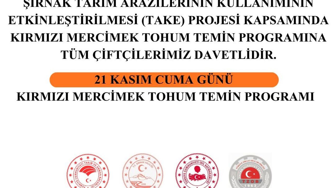 Şırnak’ın İdil ilçesinde, Tarım ve Orman Bakanlığı Bitkisel Üretim Genel Müdürlüğü tarafından finanse edilen Tarım Arazilerinin Kullanımının Etkinleştirilmesi (TAKE) Projesi kapsamında çiftçilere kırmızı mercimek tohumu dağıtılacak.
