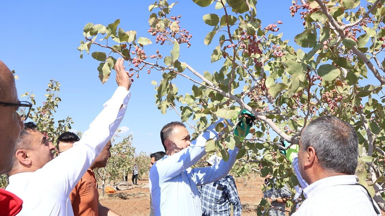 Kaymakam Adıgüzel, çiftçilerle sohbet ederek tarımsal üretim hakkında bilgi aldı ve Siirt fıstığının bölge ekonomisine katkı sağladığını vurguladı.