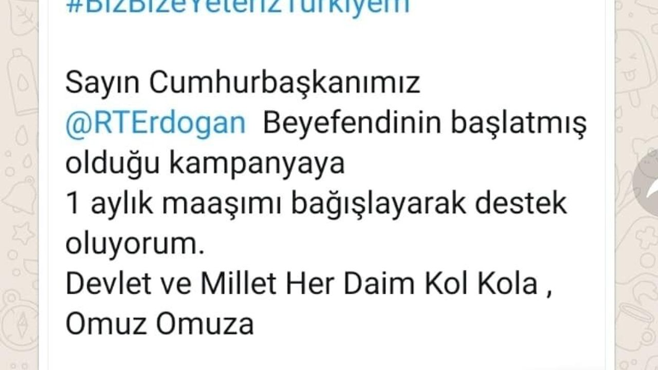 Tayyip Erdoğan’ın başlattığı Milli Dayanışma Kampanyasına bir aylık emekli