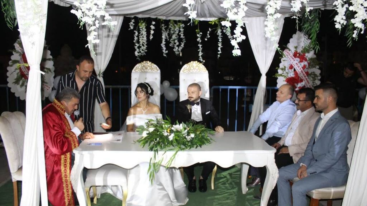 Resmi Nikahları Polisevi bahçesinde Belediye başkanı Tatar tarafından kıyıldı