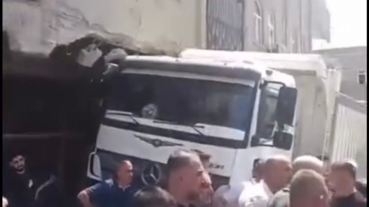 Barbaros Mahallesi’nde meydana gelen kazada, elektrik şebekelerinin yer altına alınması için yürütülen çalışmalar sırasında kullanılan kamyon aniden fren arızası yaşadı. Kontrolden çıkan araç, park halindeki otomobile çarpıp sürükledikten sonra bir evin duvarına vurarak durabildi.