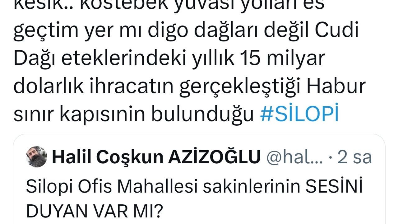 Azizoğlu, sabah saatlerinde yaptığı paylaşımda şunları söyledi: “Silopi Ofis Mahallesi sakinlerinin SESİNİ DUYAN VAR MI?Dünden beri ‘Telekom internet trafosu yanmış’ denilerek internet verilmiyor.