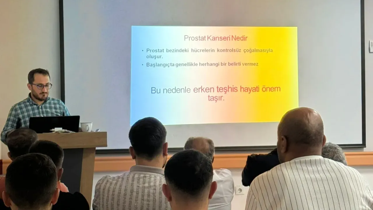 Silopi İlçe Sağlık Müdürlüğü’nde görevli Dr. Salih Öztürk, “15 Eylül Prostat Kanseri Farkındalık Günü” kapsamında kurumun erkek personeline yönelik bilgilendirme semineri düzenledi. Eğitimde, prostat kanserinde erken teşhisin önemi vurgulanırken, düzenli kontrollerin hayati rol oynadığı ifade edildi. Katılımcılar, seminer sırasında sorularını uzmanlara iletme fırsatı buldu.