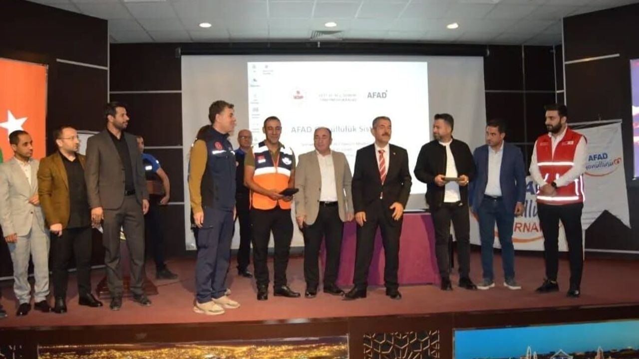 Şırnak'ın Cizre ilçesinde aralarında 6 Şubat depreminde fiilen çalışanında bulunduğu, muhtar, vaiz, imam ve sivil toplum kuruluşu temsilcilerinden oluşan 75 destek AFAD gönüllüsüne sertifika verildi.
