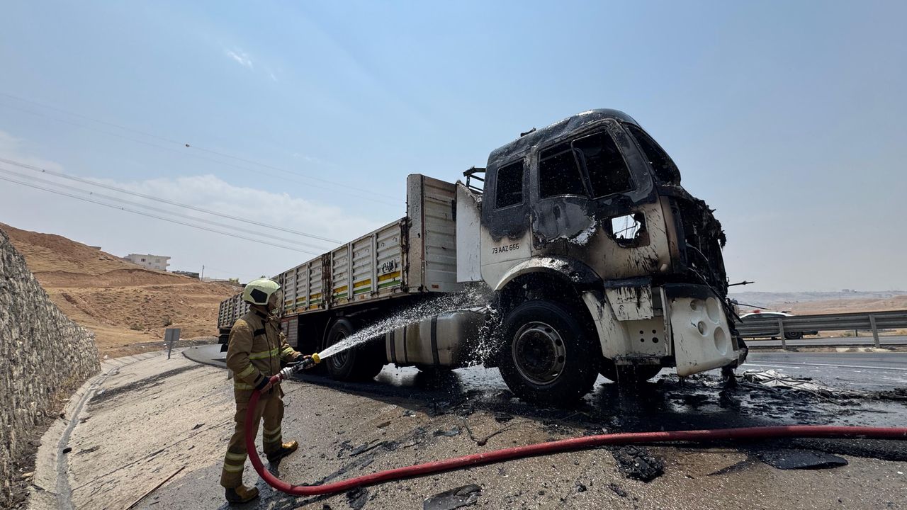 Şırnak-Cizre Karayolu üzerinde polis kontrol noktasına yakın bir bölgede seyir halindeki bir kamyonda yangın çıktı.