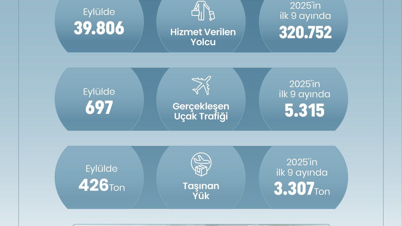 Verilere göre, Eylül ayında havalimanını 39 bin 806 yolcu kullandı. Aynı dönemde 697 uçak iniş-kalkış yaptı ve 426 ton yük taşındı.