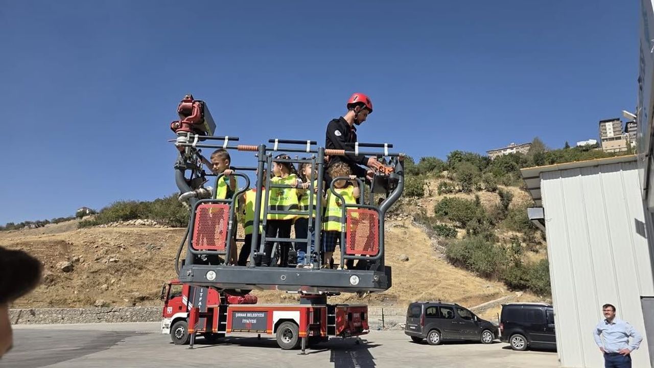 Meslek tanıtımı etkinliği kapsamında gerçekleştirilen ziyarette minikler, itfaiyecilik mesleğini yakından tanıma fırsatı buldu. Öğrenciler, itfaiye araçlarını ve ekipmanlarını inceleyerek yangın söndürme çalışmalarının nasıl yürütüldüğünü öğrendi.