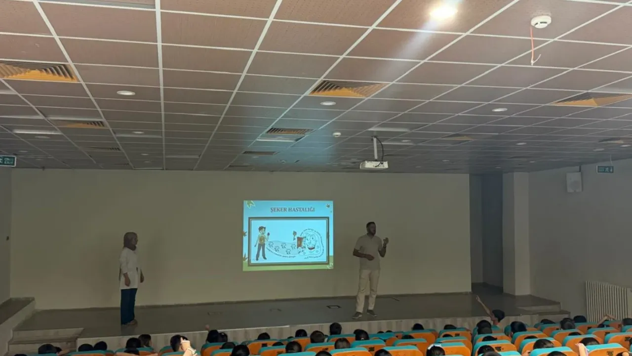 Etkinlikler kapsamında diyetisyenler tarafından öğrencilere kontrolsüz şeker tüketiminin zararları, diyabet hastalığı ve korunma yolları ile sağlıklı beslenme konularında eğitim verildi.