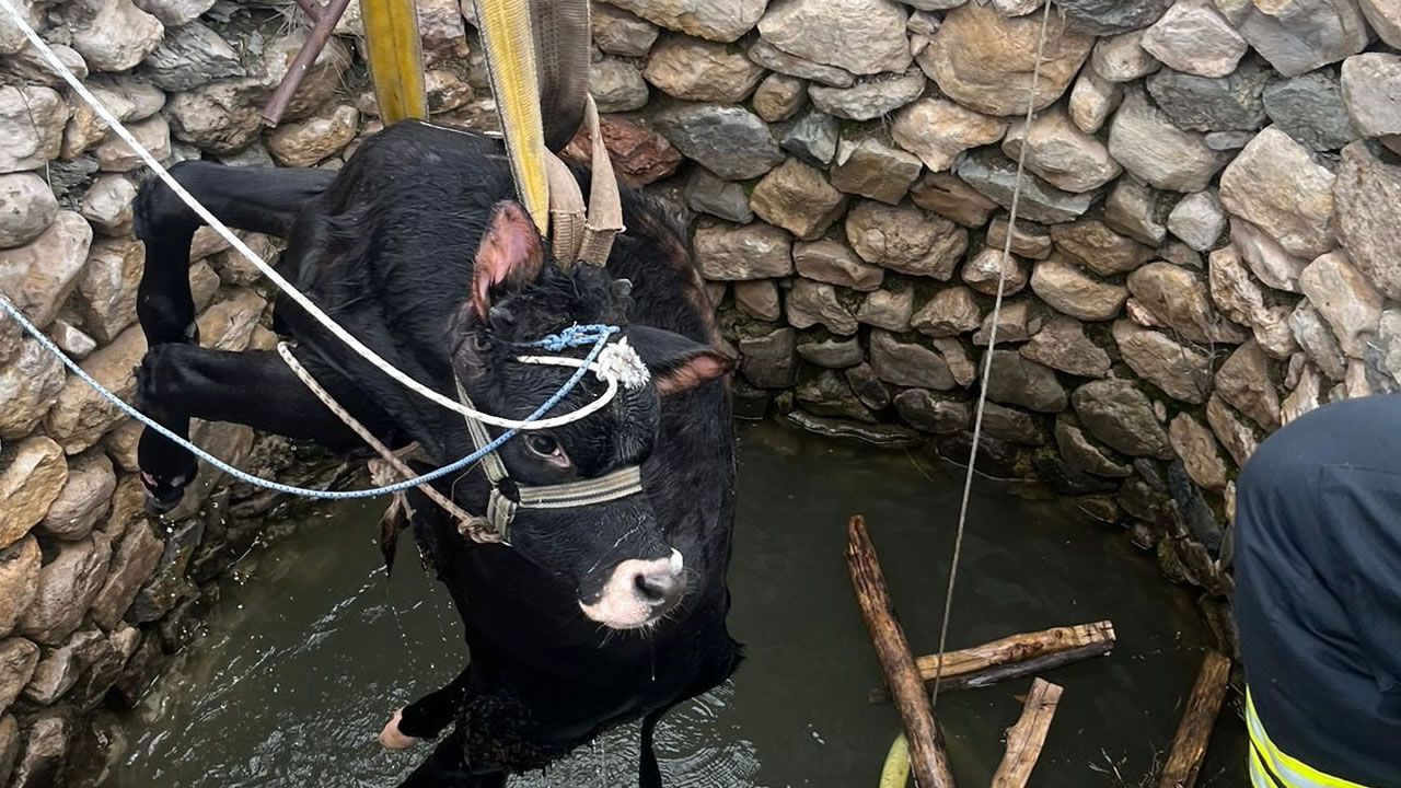 Edinilen bilgilere göre, ilçenin Değirmendere Mahallesi'nde su dolu kuyuya düşen inek için 112 Acil Çağrı Merkezine ihbarda bulunuldu. İhbar üzerine olay yerine itfaiye ekibi sevk edildi. İtfaiye erleri, ineği sağ bir şekilde kuyudan çıkartıp sahibine teslim etti.